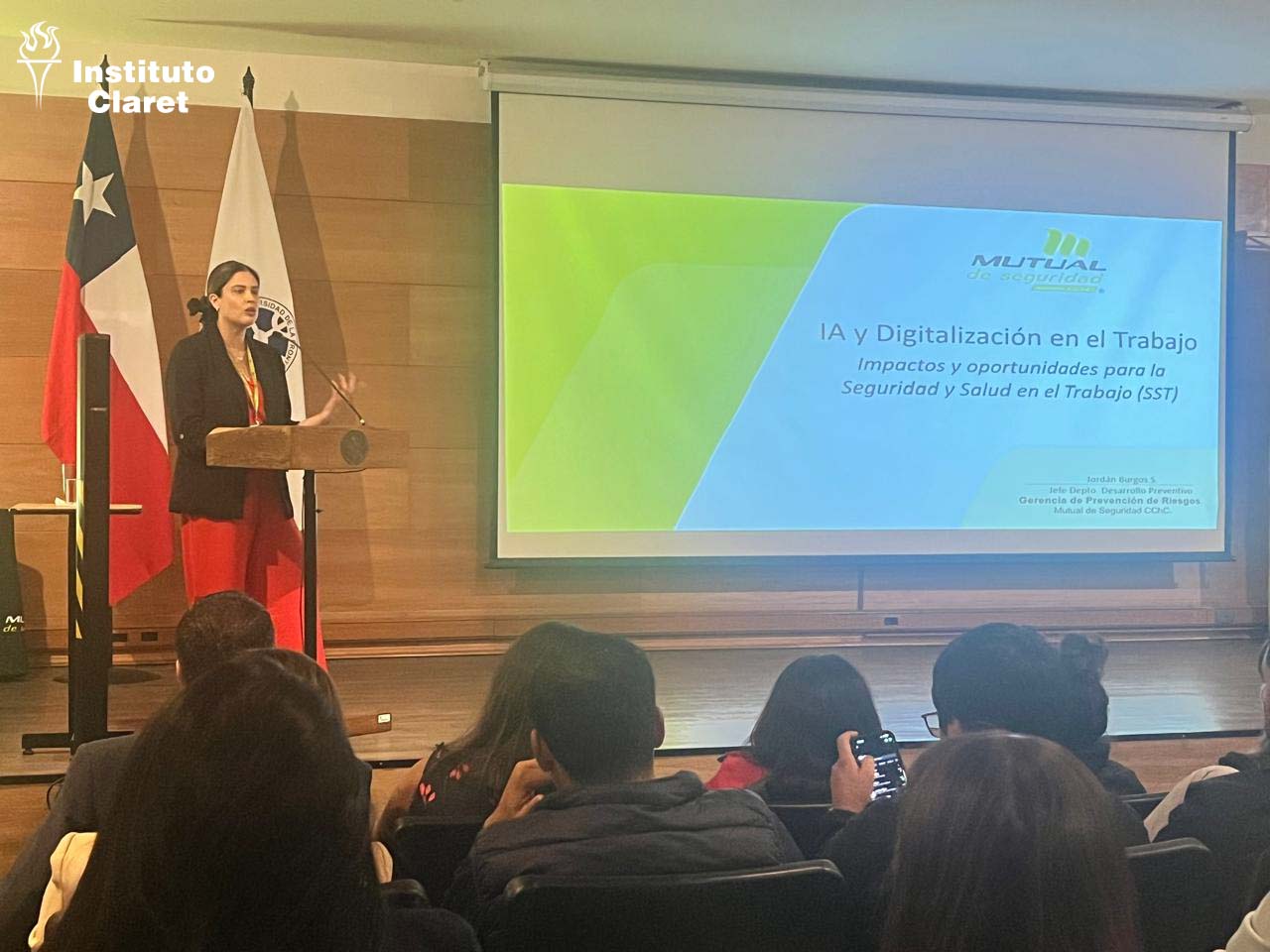 - IA y Transformación Digital: Finalmente, Jordán Burgos S., Jefe del Departamento de Desarrollo Preventivo, abordó el impacto de la Inteligencia Artificial y la digitalización en la SST, explorando las oportunidades que estas herramientas ofrecen para modernizar la prevención.