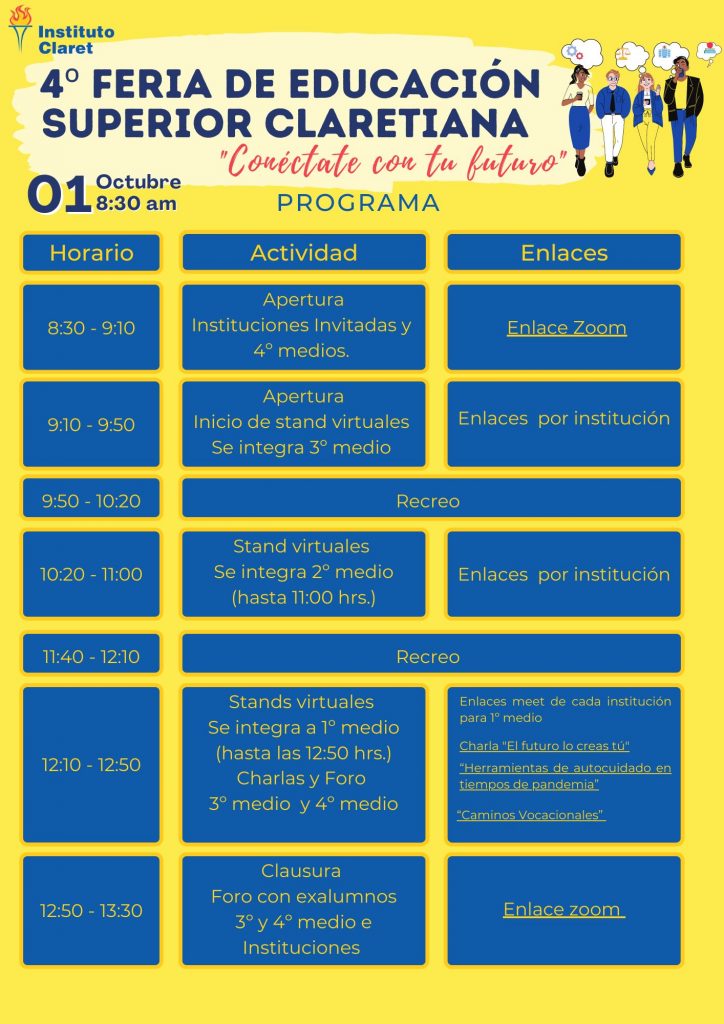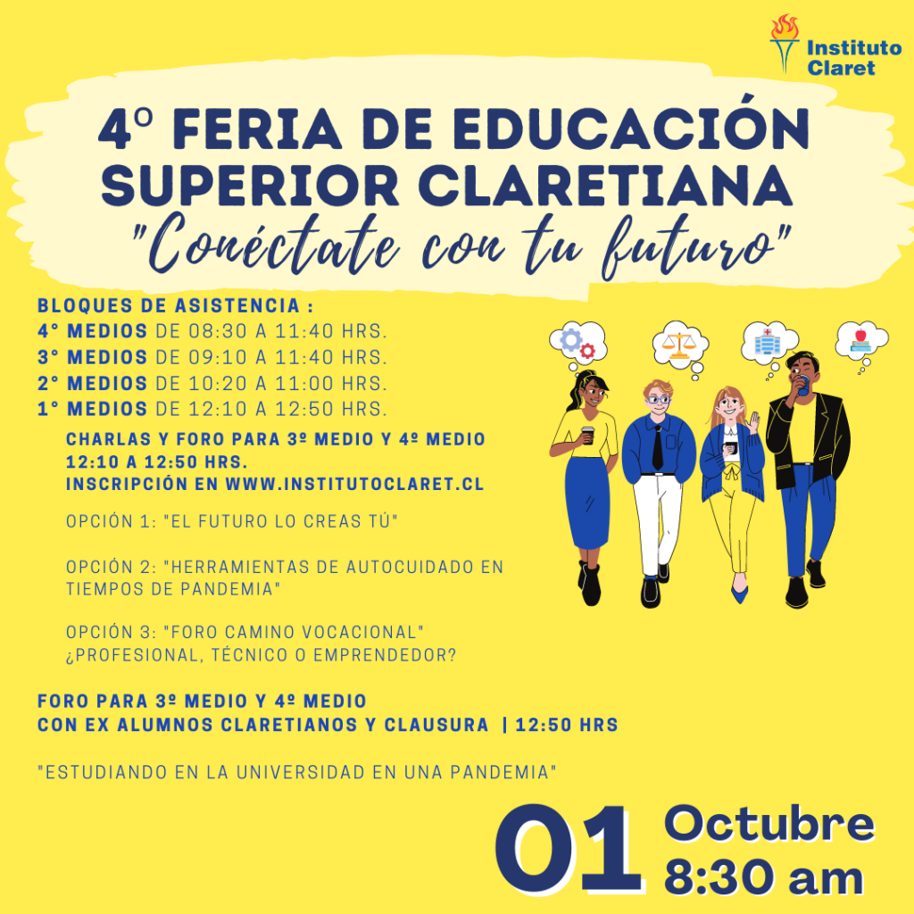 Se extiende la invitación a las y los jóvenes a participar de la Cuarta Feria Universitaria Claretiana, revisando los stand virtuales de las distintas universidades disponibles.